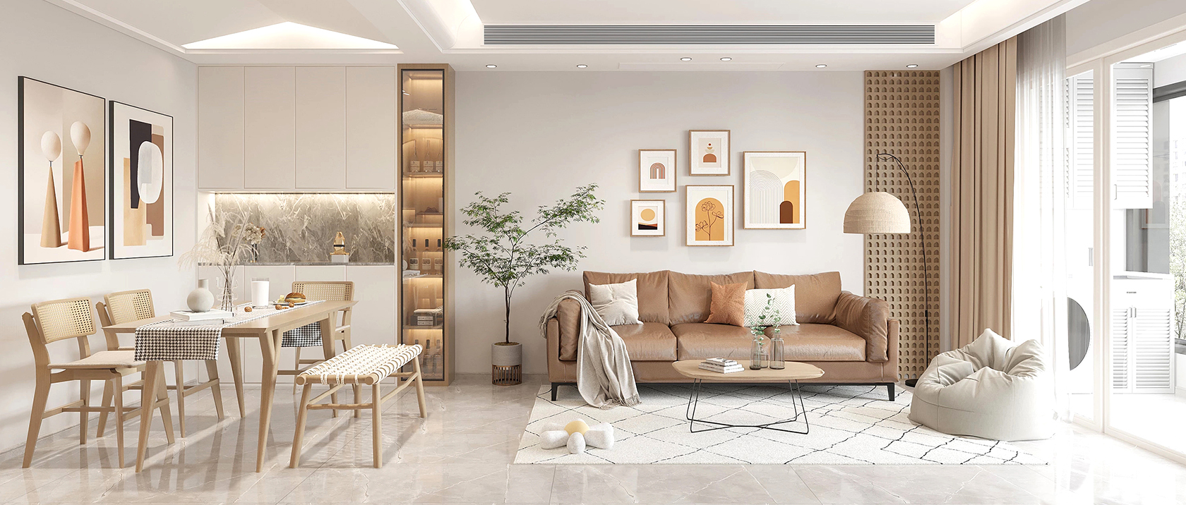 自在明朗,不失優雅,在空間中,時刻提醒著你對生活的熱愛,克制了張揚,也激發了平淡,把形狀、細節、材質糅合,成了一個極具質感的當代之家,值得你在四季的悠閑時光中慢慢回味。
